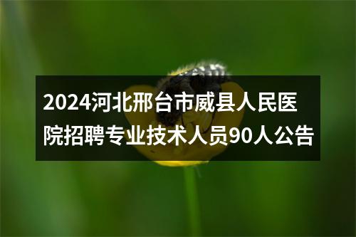 2024年威县人民医院拟公开招聘专业技术人员90名。具体招聘人数和岗位条件详见《2024年威县人民医院公开招聘专业技术人员岗位条件表》(附件1)。
